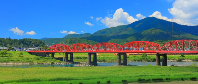 長さ約500m、四万十川の清流に架かる鉄橋で、大正15年(1926)の開通当時は、四国を代表する大橋梁であった。“赤鉄橋”の通称で親しまれており、現在も地元民の交通に大いに役立っている。